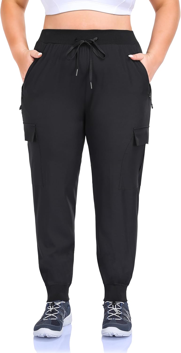 COOTRY Women's Plus Size Hiking Cargo Pants Athletic Workout Outdoor Quick Dry Lightweight Joggers Zipper Pockets Golf Pants