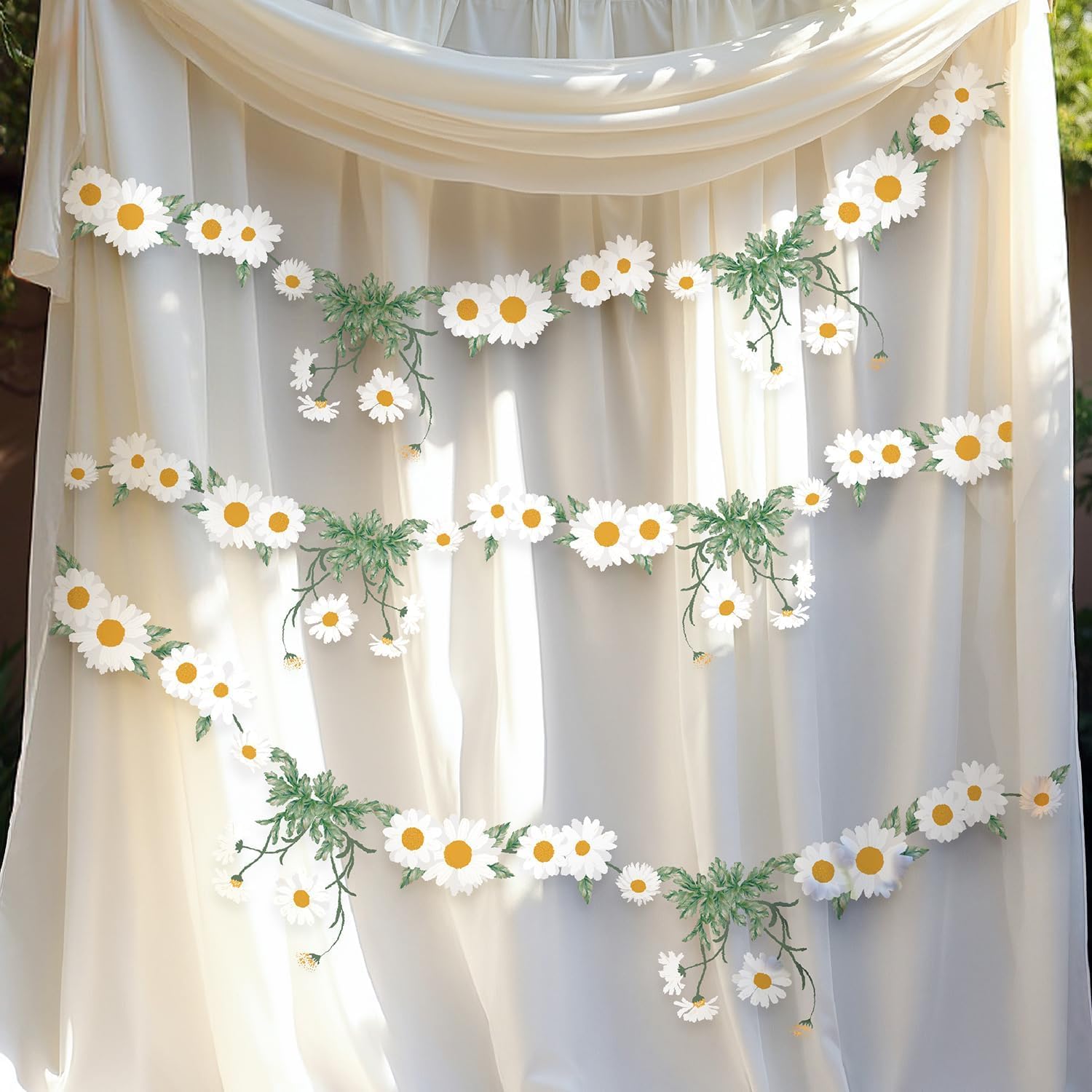 - Package: This set includes 3pcs daisy garlands, each 2 meters (6.6 ft) long, perfect as daisy banner, flower garland, or floral garland for creating lush floral decorations, daisy birthday decorations, baby shower banners, or flower birthday decorations. Great for garden party decorations, classroom party setups, or floral party decorations.