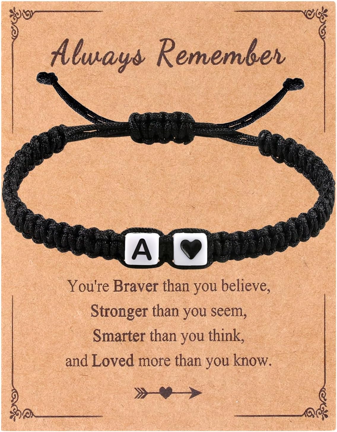 Initial Letter Bracelets for Men Women Teens Braided Black Rope Meaningful Gift Ideas Son Daughter Brother Boyfriend Girlfriend