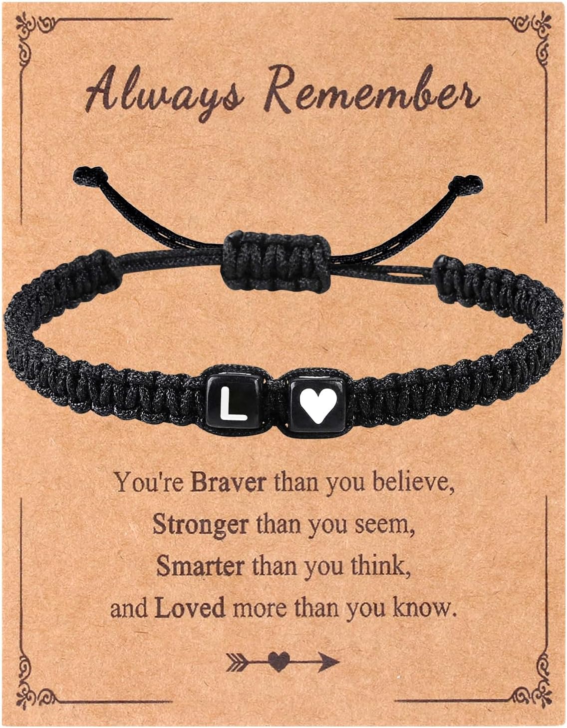 Initial Letter Bracelets for Men Women Teens Braided Black Rope Meaningful Gift Ideas Son Daughter Brother Boyfriend Girlfriend