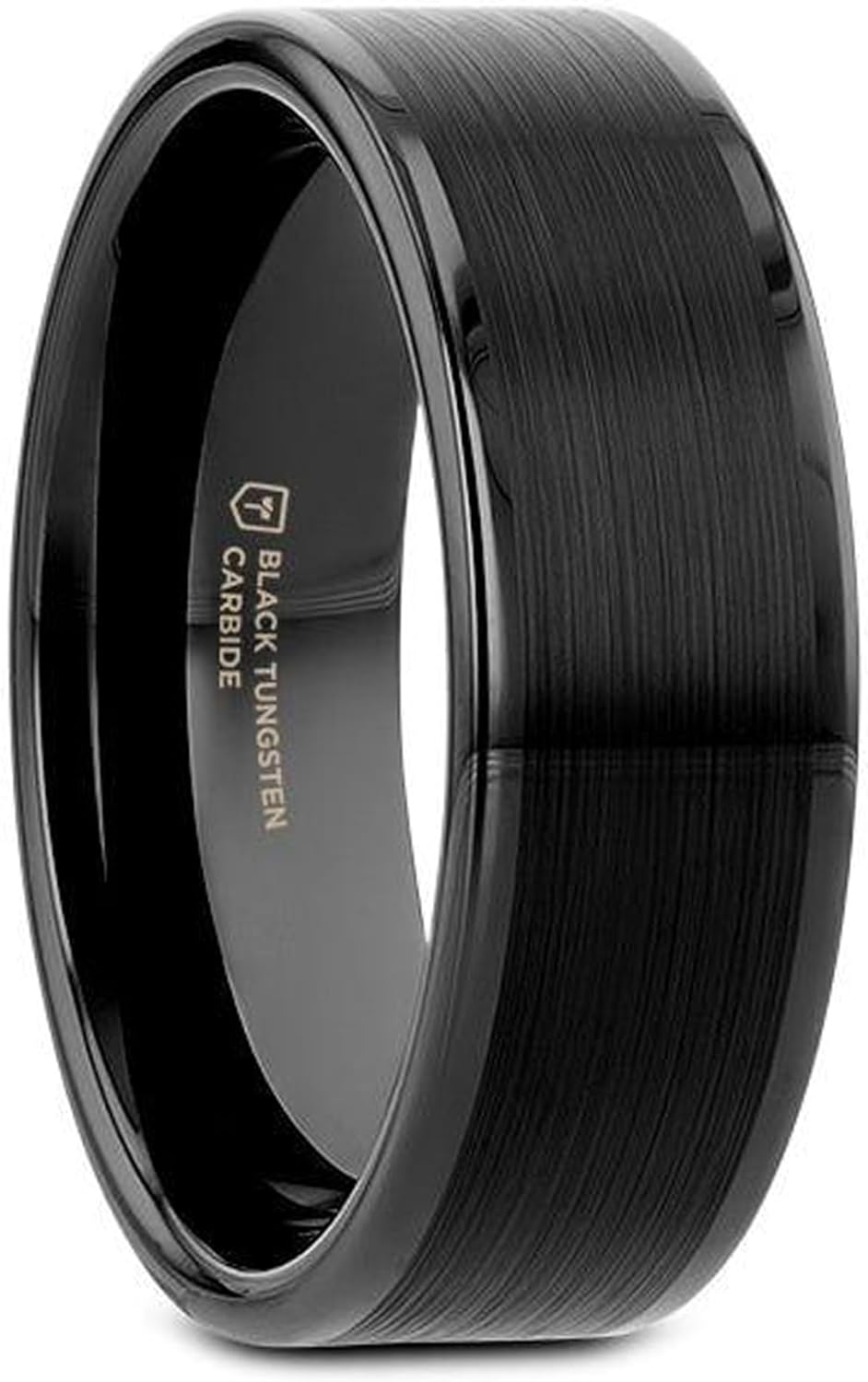 Thorsten Vulcan Black Tungsten Carbide Men’s Wedding Ring – Flat Matte Brushed Finish with Polished Edges – Comfort Fit Wedding Band – Durable and Stylish Ring for Him
