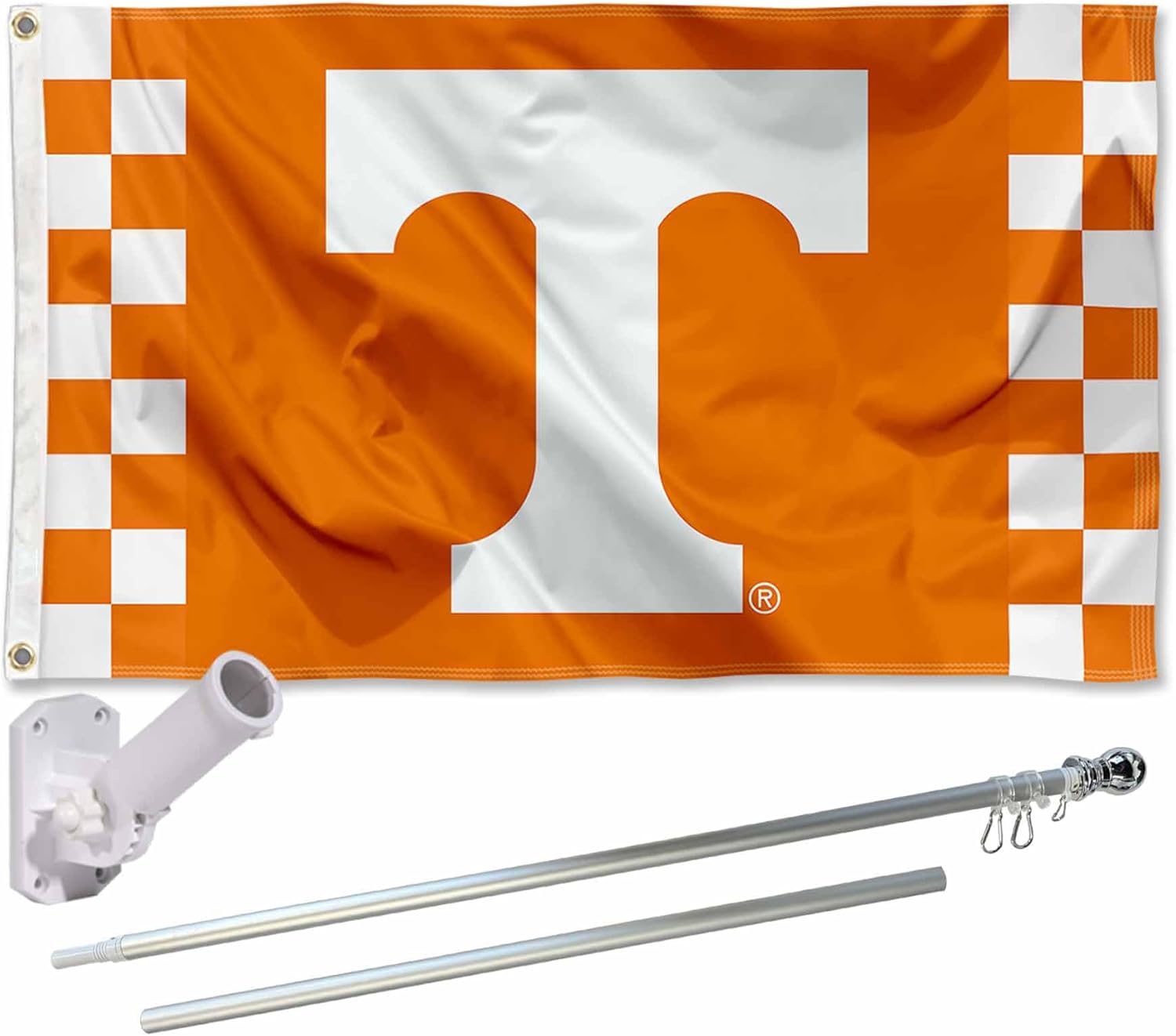 Tennessee Volunteers Checkered Stripes Flag with Pole and Bracket Kit