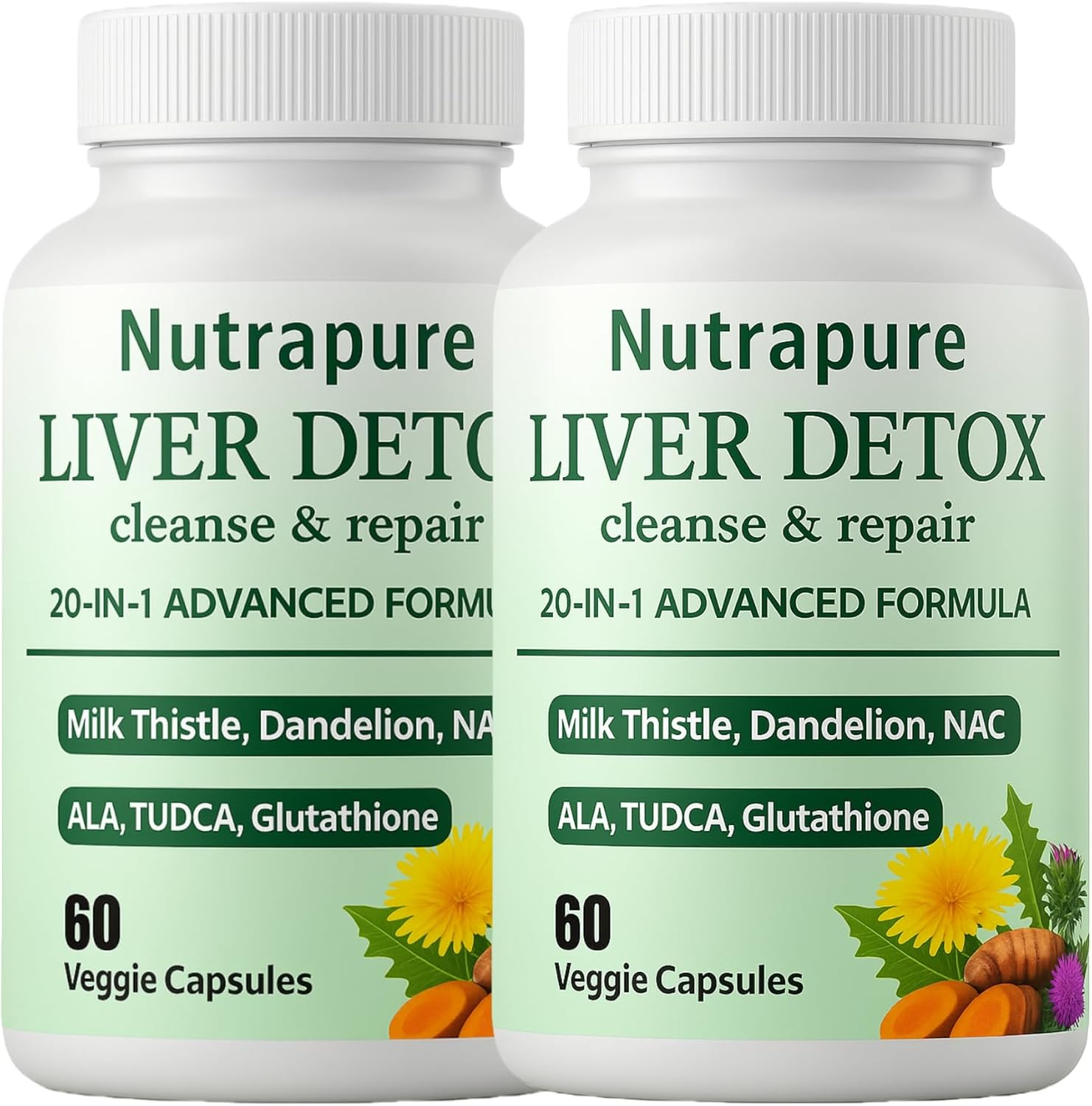 Nutrapure Liver Support Capsules, 20-in-1 Formula with Milk Thistle, Turmeric & Inositol, Antioxidant & Daily Wellness Support, 60 Veggie Capsules