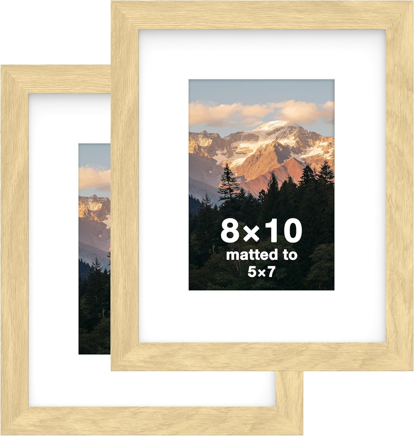 FrameWorks 2-Pack, 8x10 Matted to 5x7 Picture Frame, Natural Oak – Classic Wooden Photo Frame with Tempered Glass, Modern Matte Finish for Prints, Posters, Certificates & Wall Decor – Gallery-Ready