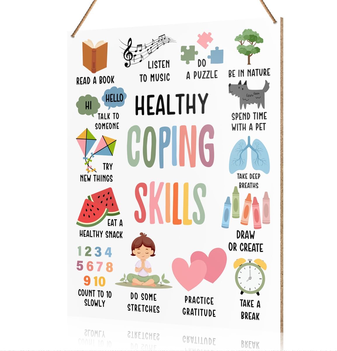Mental Health Office Decor Healthy Coping Skills Wooden Sign for Therapy Office Home School Counseling Decor, Mental Health Gifts for School Counselor Psychologist Therapist, 10.2 x 7.8 Inches