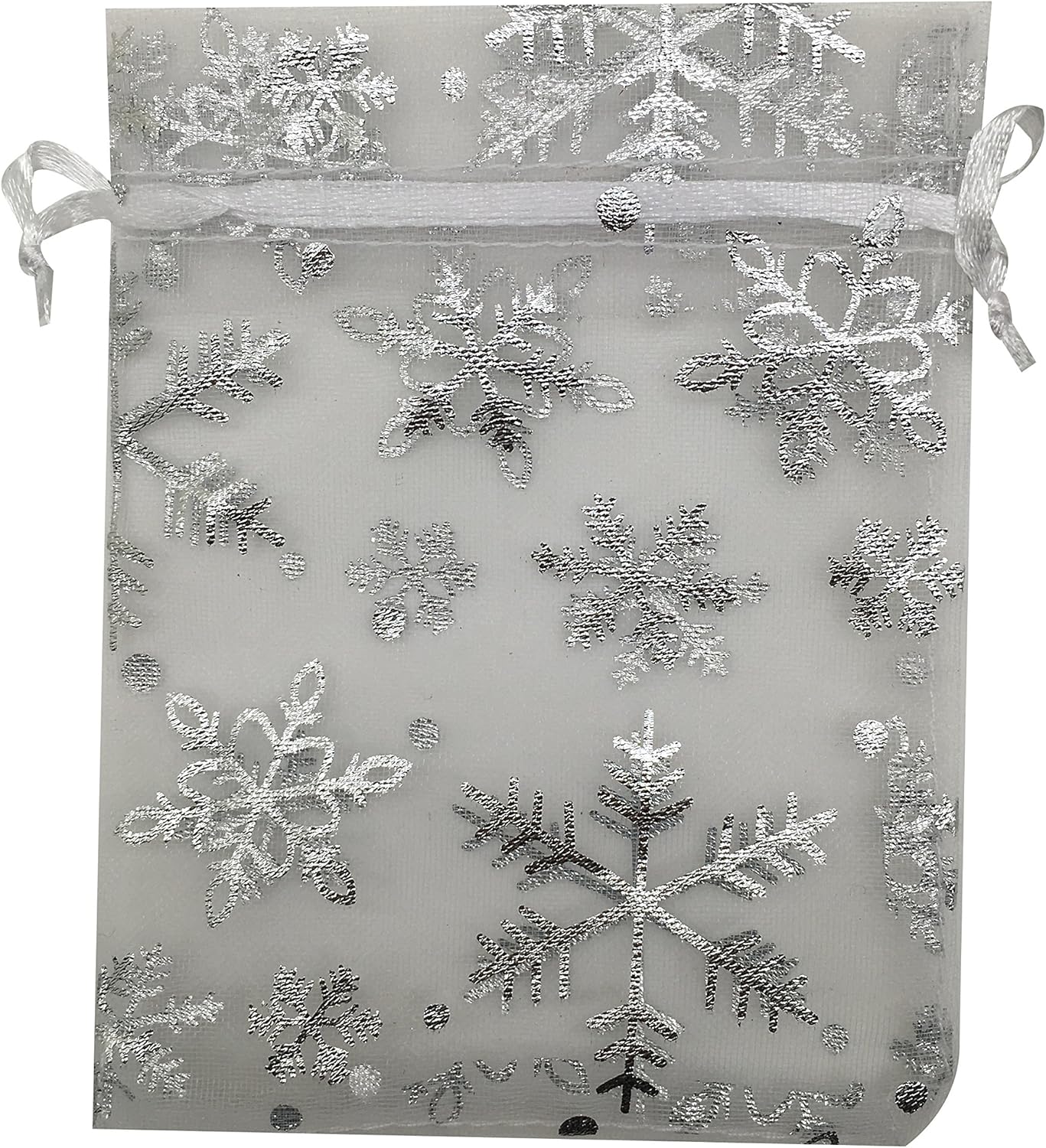 50pcs Organza Pouch Bag Drawstring 5"x7" 13x18cm Strong Gift Candy Bag Jewelry Party Wedding Favor (White Snowflake)