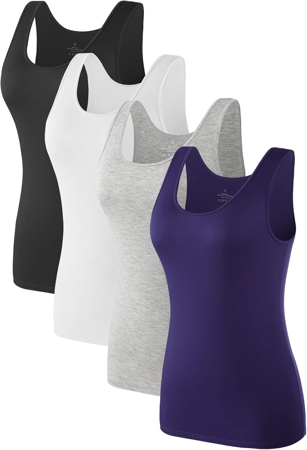 Air Curvey 4 Pack Tank Top for Women Basic Undershirt Tanks Sleeveless Casual Shirts Soft Seamless Layering Tops