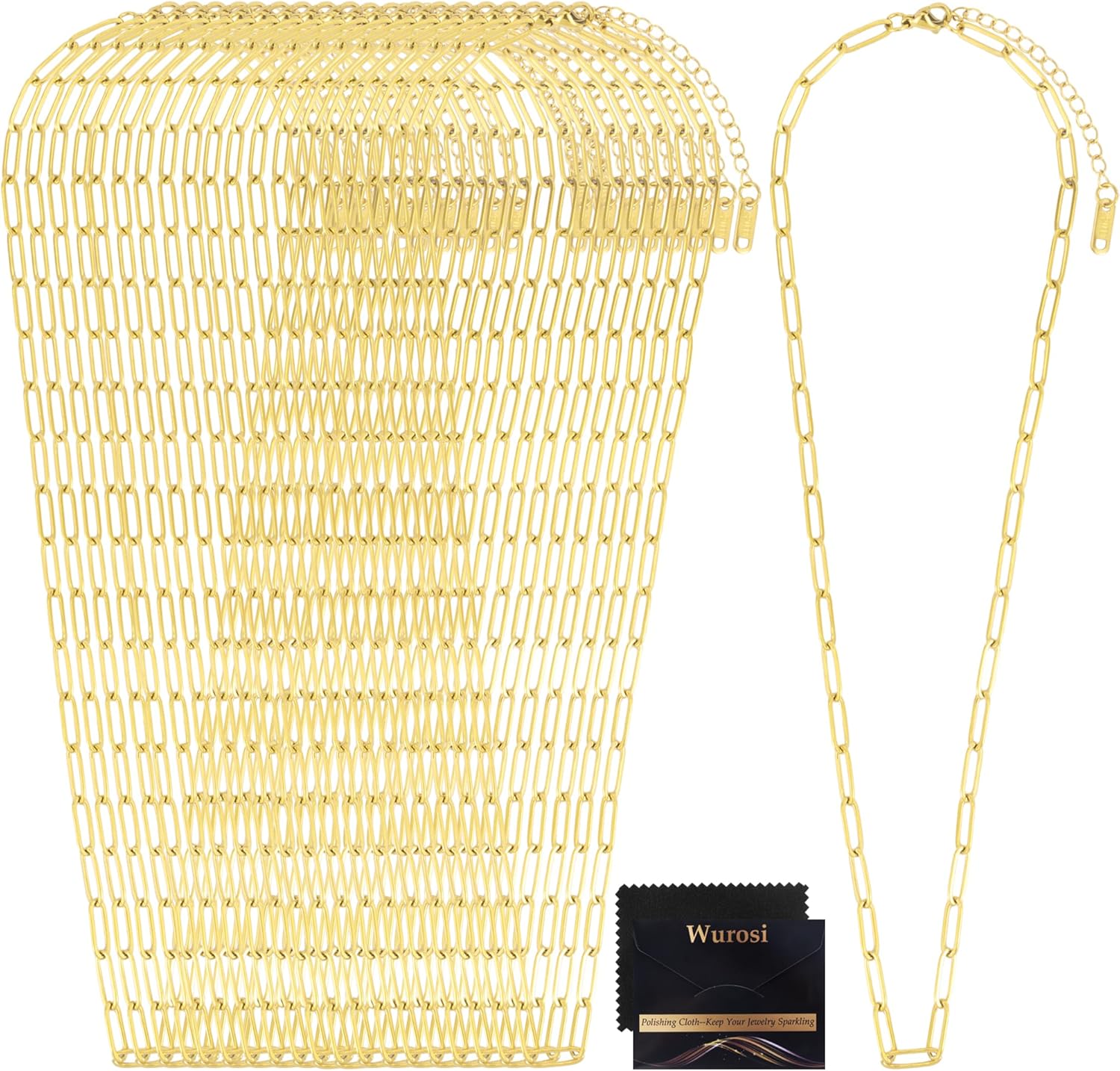 - Package Included:20pcs 18inch 4mmx12mm charm necklace chains bulk with 2inch extended chain.20PCS gold paperclip chain necklace.Each piece is individually packaged