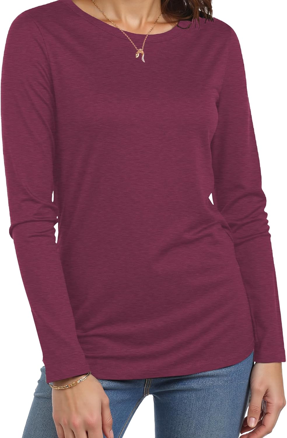 Long Sleeve Shirts for Women Crew Neck Basic Tee Fashion Womens Tops