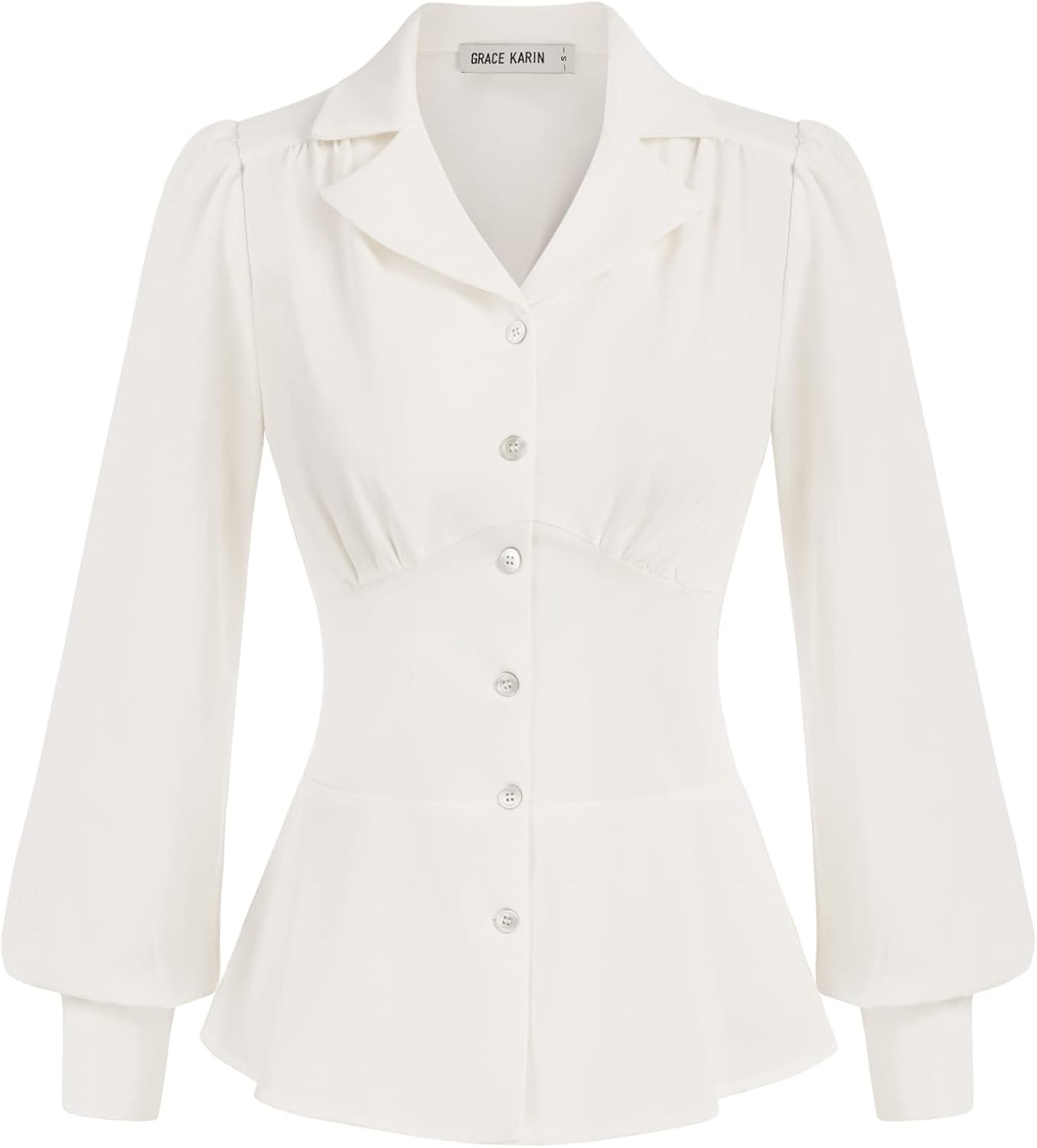 GRACE KARIN Womens Long Sleeve Tops Business Casual, Dressy Button Down Peplum Blouses, Fall Collared Work Elegant Shirt