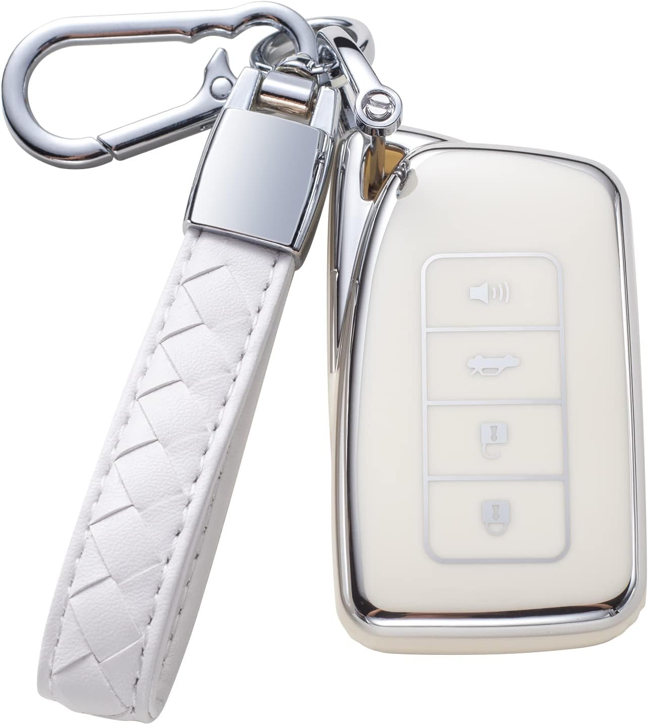 Compatible with Lexus Key Fob Cover with Leather Lanyard, Car Key Case Shell Protection for Lexus RX is ES GS LS NX RS GX LX RC LC Smart Remote Control, White