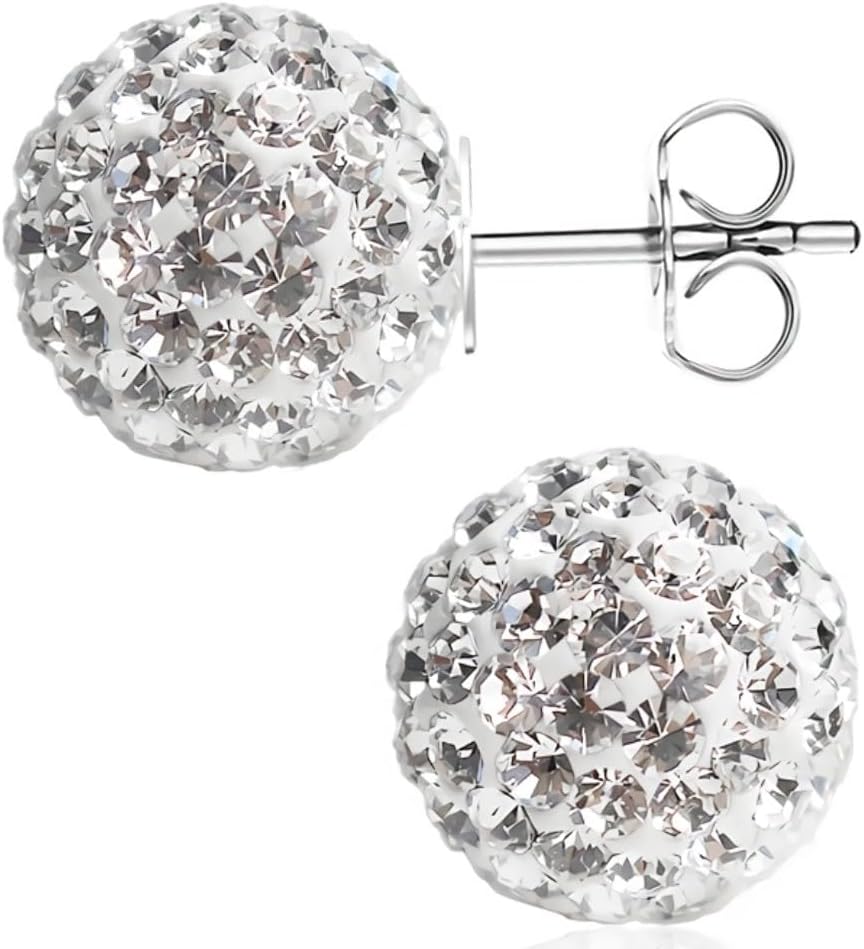 925 Sterling Silver Sparkle Crystal Ball Stud Earrings for Women