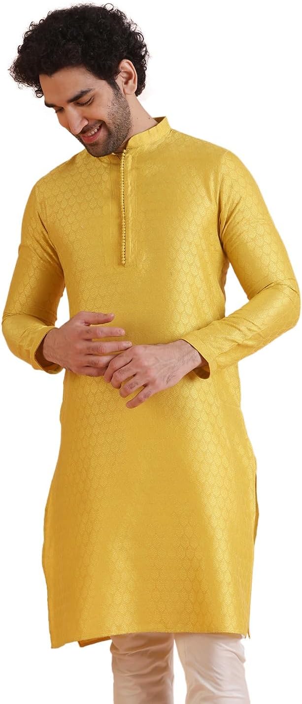 KISAH Men's Kurta – Woven Jacquard Cotton Blend Tunic with Mandarin Collar, Best Fit – Indian Wedding Outfit for Men