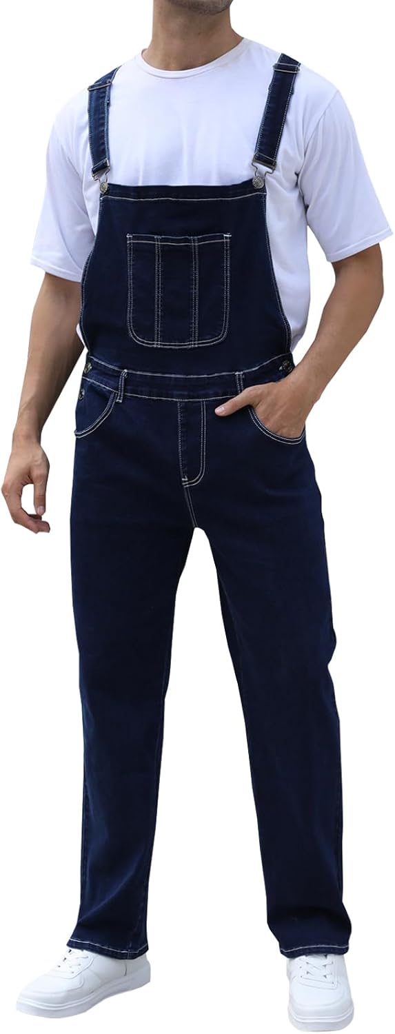 LONGBIDA Men's Denim Bib Overalls Relaxed Fit Fashion Jean Jumpsuit