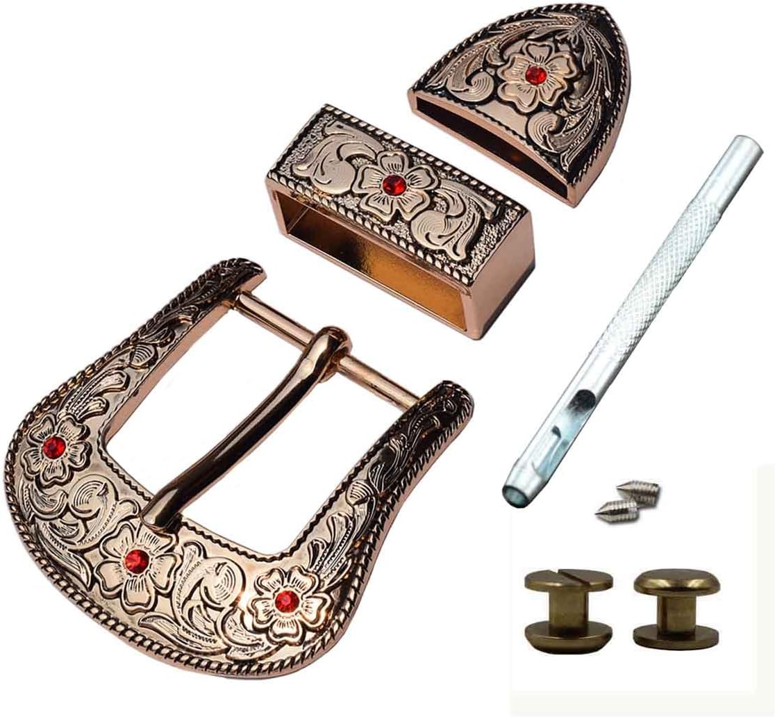 1.5" Wide Engraved Belt Buckles Pale gold Inlaid Ruby Belt Buckle Set