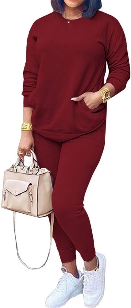 HBQ Women Two Piece Outfits Casual Long Sleeve Sweatsuits Jogger Tracksuits Lounge Sets With Pockets