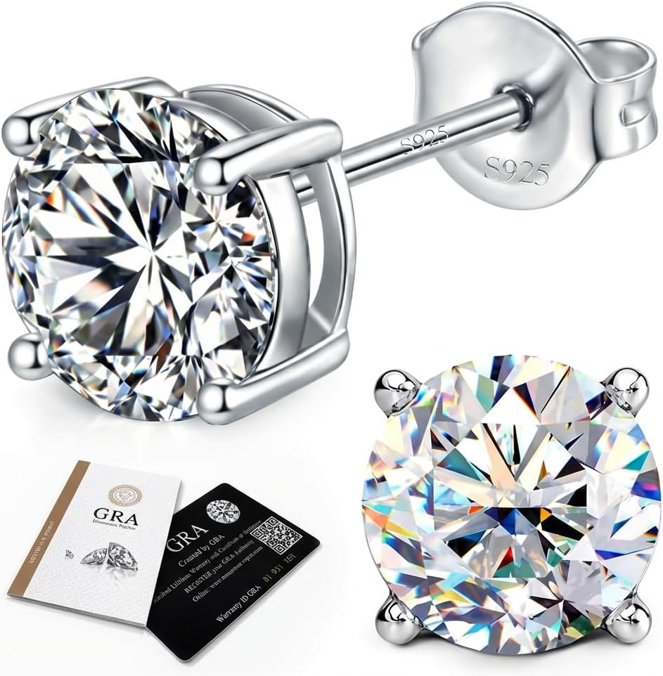 Moissanite Stud Earrings for Women Men : 0.6-4CT 18K White Gold Plated Solid S925 Sterling Silver Earring Hypoallergenic Dainty Flat Diamond Earrings Wedding Jewelry for Women Men D Color VVS1 Clarity