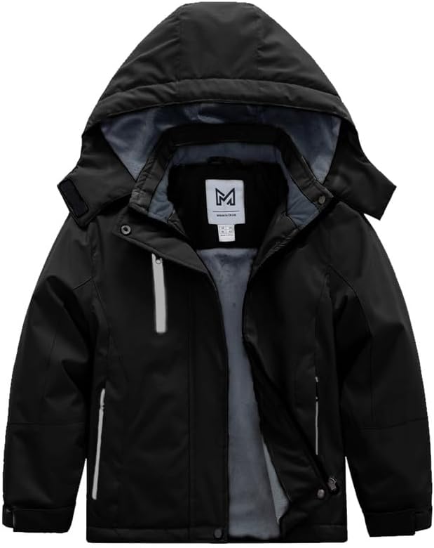 KVE Girl's Waterproof Ski Jacket Warm Fleece Winter Jacket Windproof Hooded Snow Coat Mountain Sportswear Outdoor Raincoat