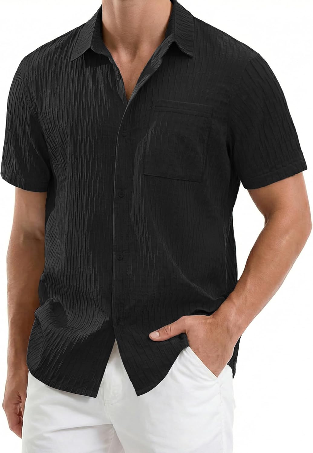 MAGNIVIT Men's Button Down Short Sleeve Shirts Casual Textured Summer Beach Shirt with Pocket