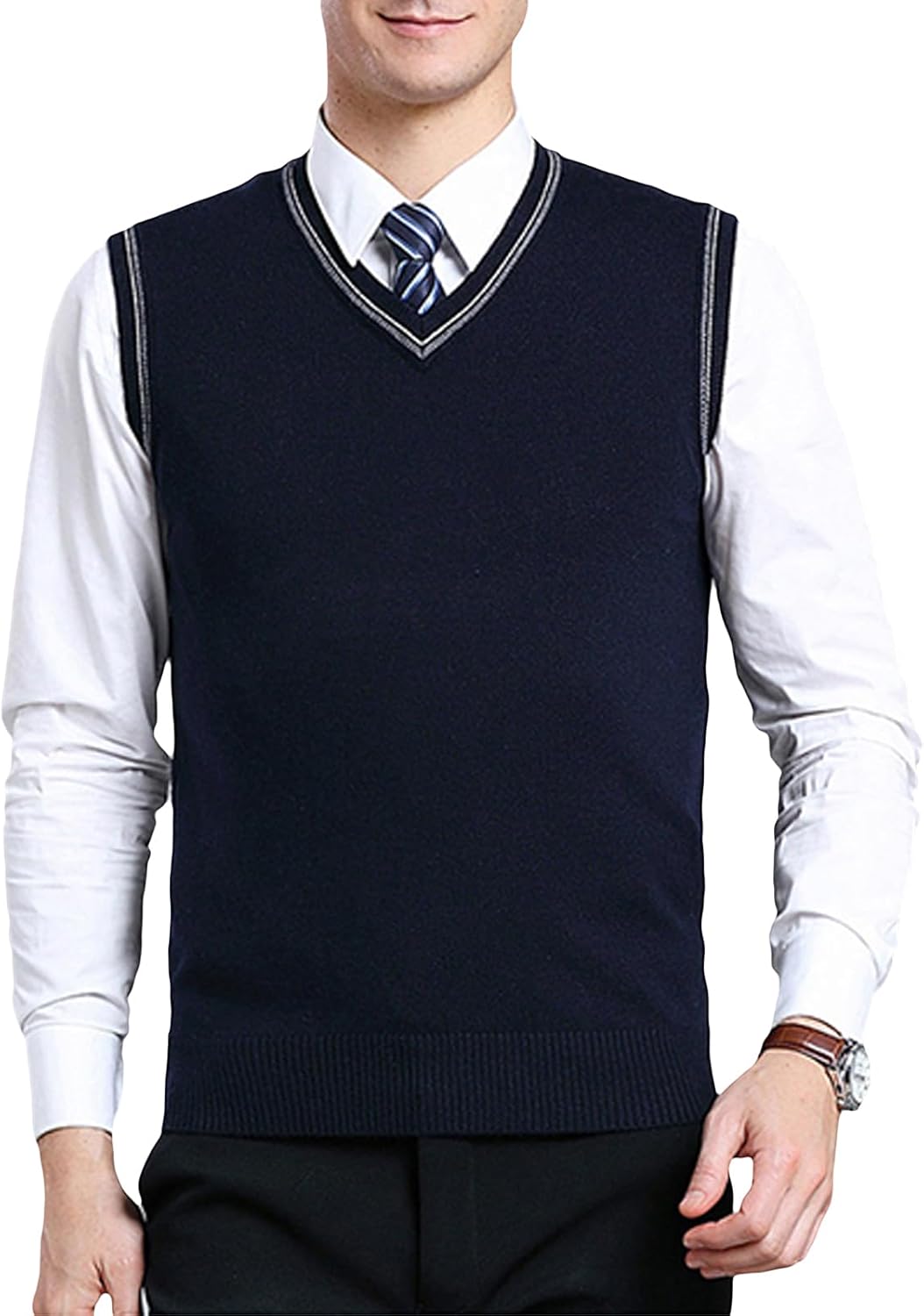 ZUEVI Men's Sweater Vests V-Neck Sleeveless Knitted Pullover Sweaters Relax Fit Classic Striped Vest Knitwear