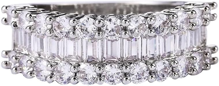 Luxury Sparkling 925 Sterling Silver Shiny Full Diamond Tiny Baguette Ring CZ Diamond Multi Row Ring Eternity Engagement Wedding Band Ring for Women ST.430
