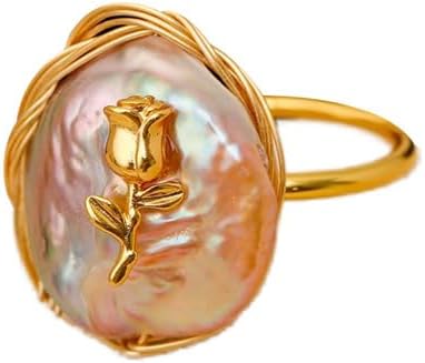 Kokoma Baroque Pearl Ring Vintage Oval Pearl Rose Floral Statement Finger Bands Geometry Disc Circle Adjustable Open Band Rings Jewelry for Women