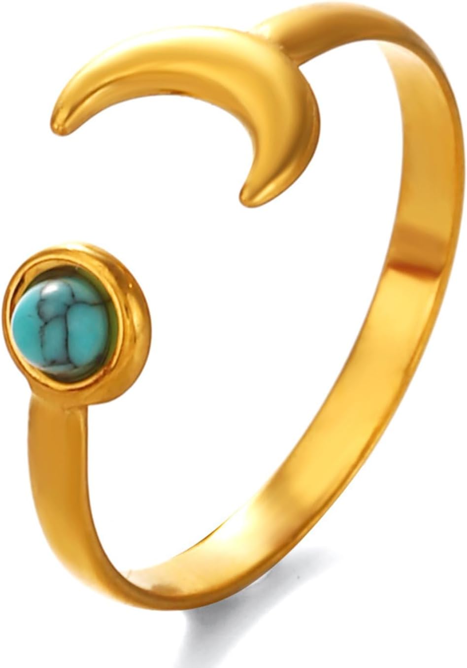 Adjustable Leaf Ring, Stainless Steel Gold Turquoise Ring for Western Jewelry, December Birthstone Hippie Jewelry for Women