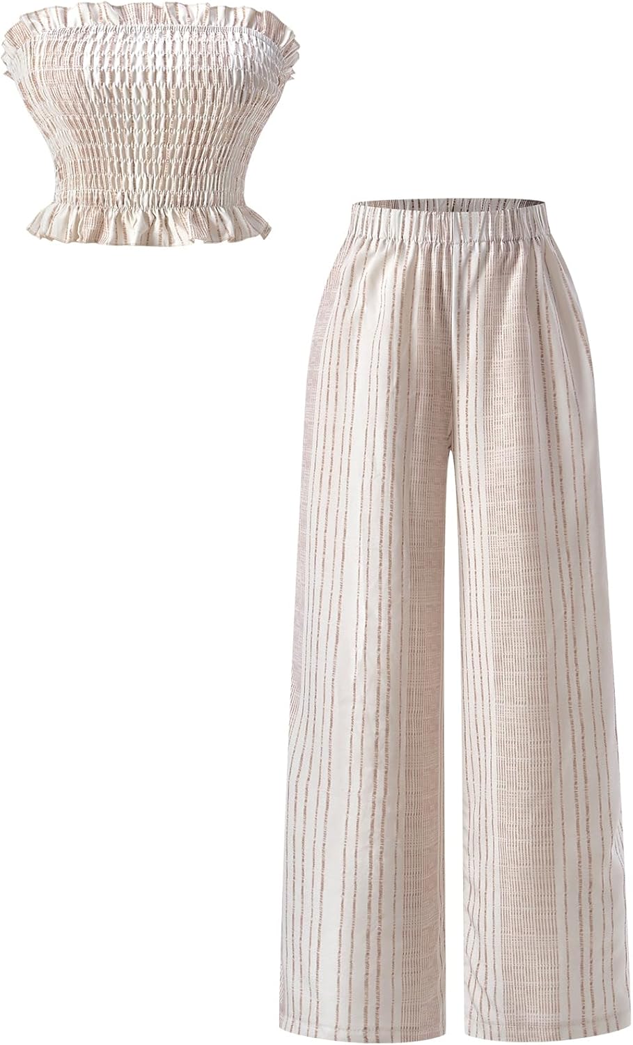Women's 2 Piece Beach Vacation Outfits Striped Strapless Crop Tube Top and Pants Summer Sets