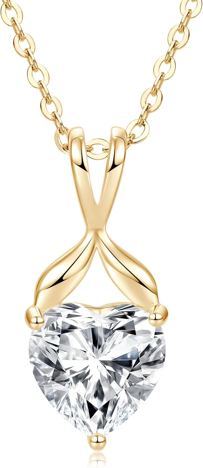 Moissanite Heart Pendant Necklace for Women, 14K Gold Plated 925 Sterling Silver, Imitation Diamond Dainty Jewelry Gift for Her, Mom, Wife