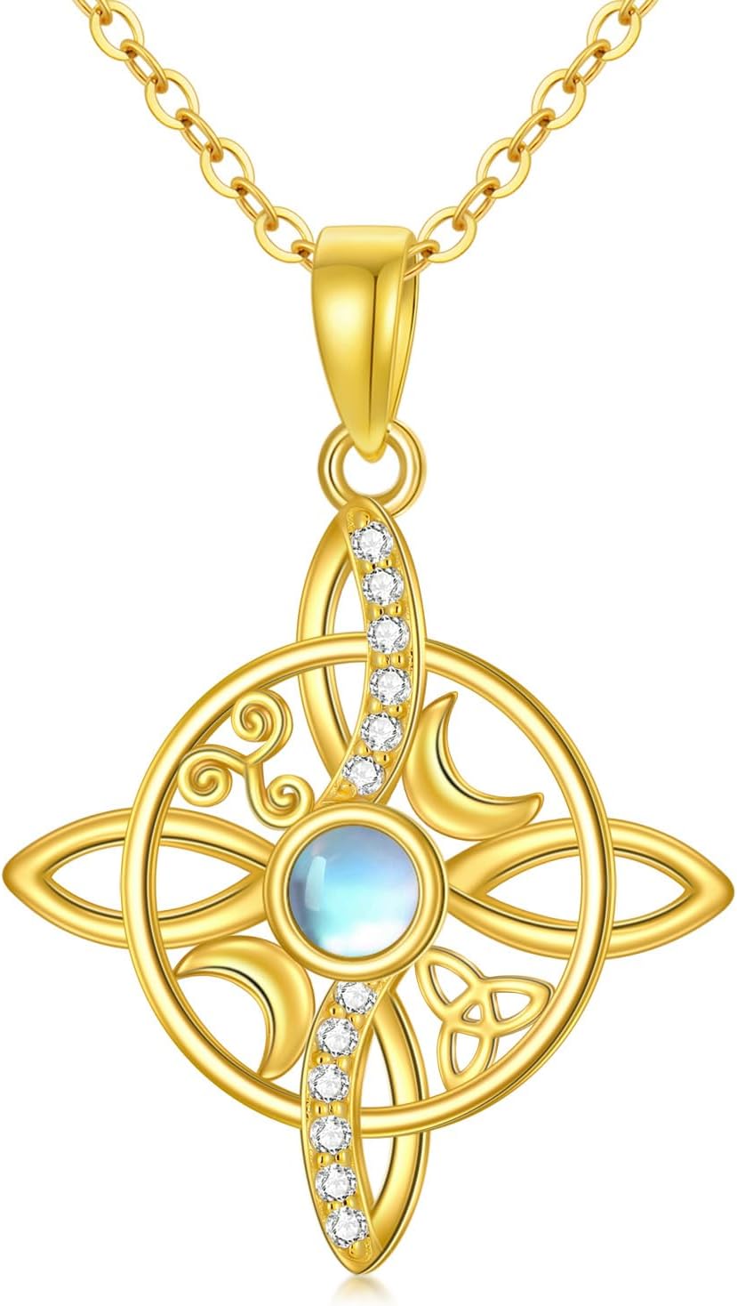 14K Solid Gold Celtic Knot Necklace for Women, Real Gold Amulet Pendant, Irish Pendant Necklace, Jewelry Mother's Day Birthday Gifts for Women, Girlfriend, Wife, Mom, Her