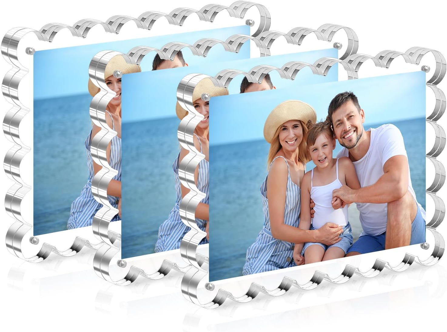 HOUSE DAY Acrylic Picture Frames 5x7 Acrylic Frame, 3 Pack Scalloped Magnetic 5x7 Picture Frame, Double Sided Clear 5 x 7 Photo Frame, Frameless FreeStanding 5 x 7 Picture Frames Gift for Desktop Display