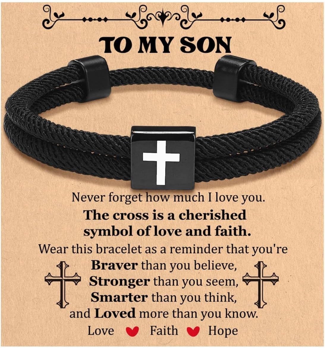 72ore To My Son Bracelet from Dad Mom Gifts for Son Black Cross jesus Bracelet Gift for Men Birthday Inspirational Gifts for Him
