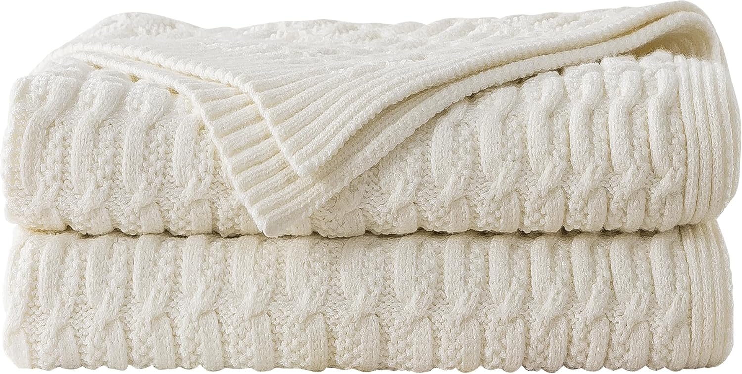WDCOZY White Cable Knit Throw Blanket – Super Soft, Warm & Lightweight Cream Knitted Jacquard Throw Blanket for Couch, Sofa, Bed, Chair, Cozy Texture Farmhouse Decorative Home Blanket, 50x60 inches