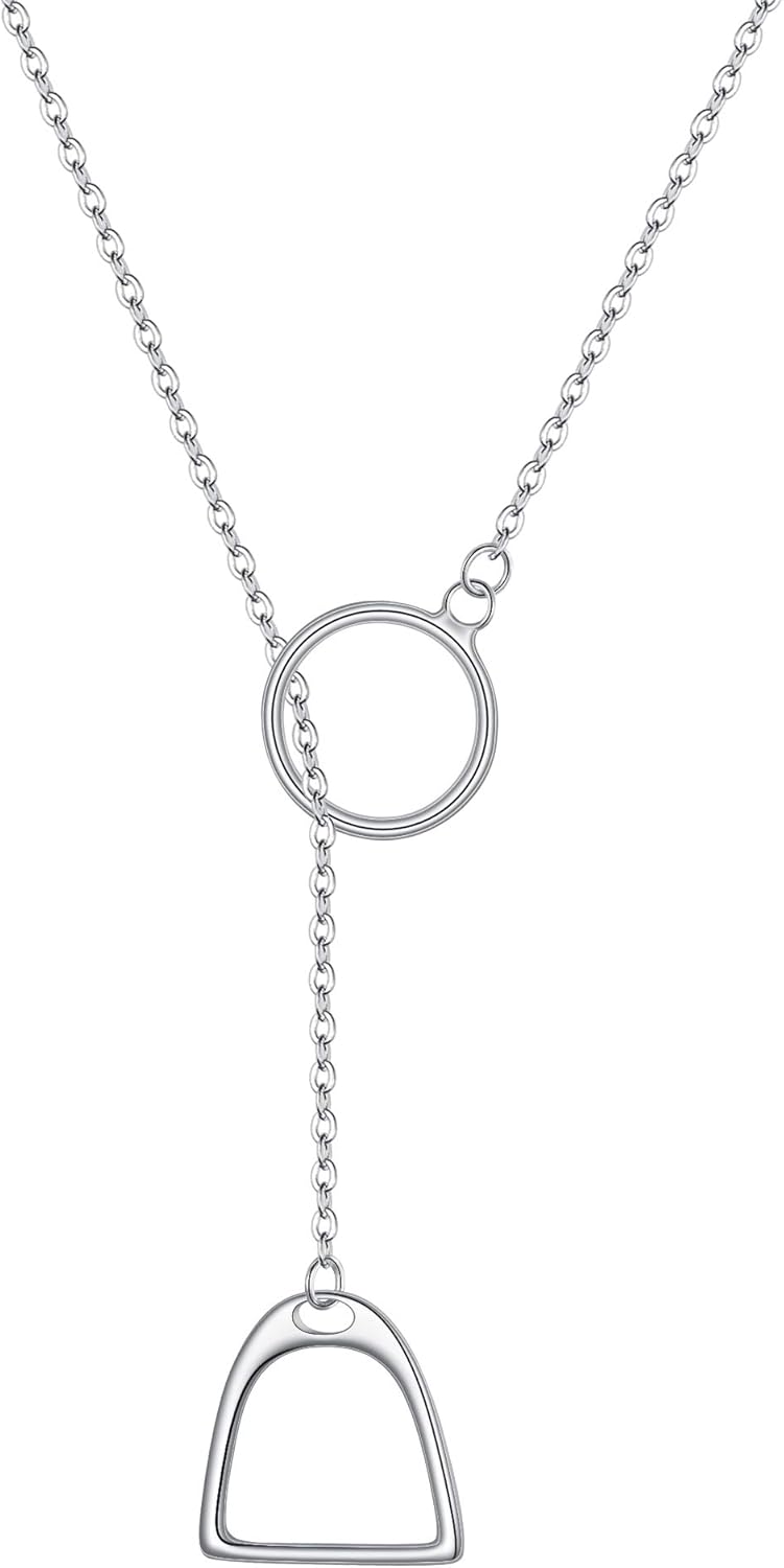FANZE 925 Sterling Sliver Horseshoe Necklaces for Women Double Stirrup Y Necklace Classic Western Horse Jewelry Gift for Anniversary Valentines Christmas