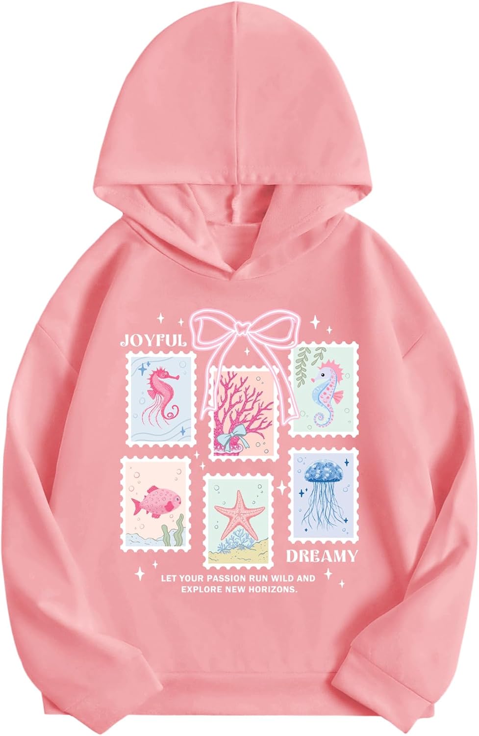 SweatyRocks Girl's Cute Graphic Hoodies Long Sleeve Hooded Sweatshirt Fall Pullovers Tops