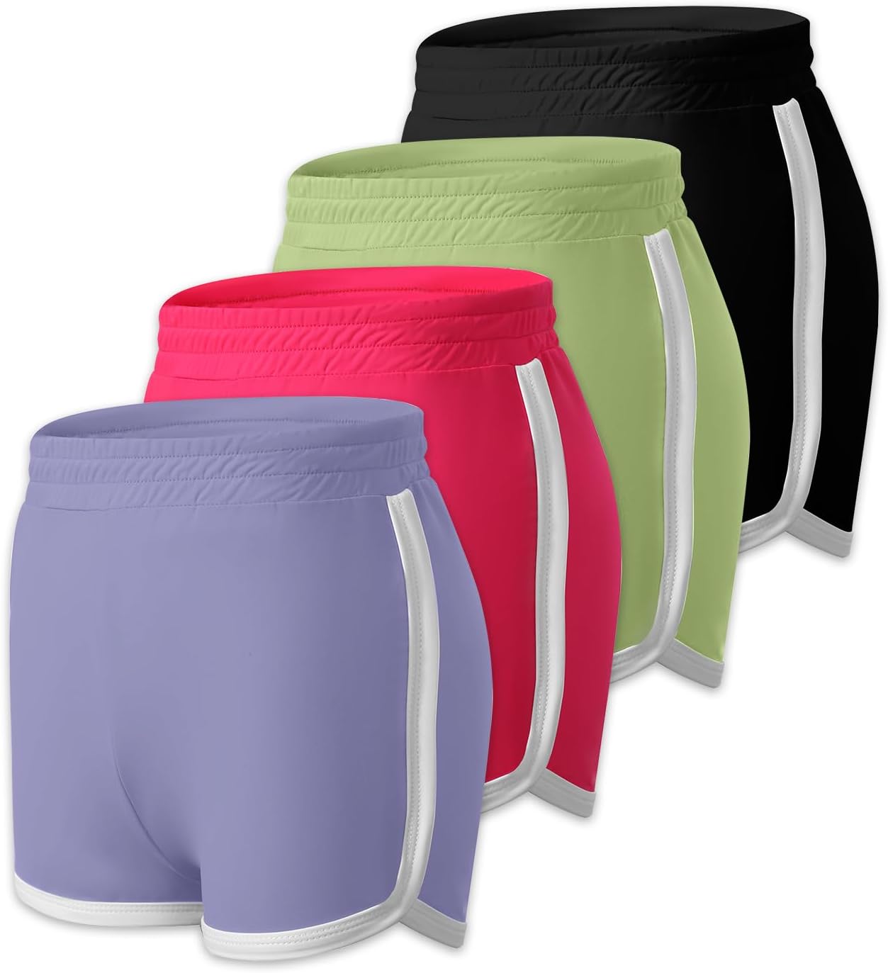 4 Pieces Girls Active Shorts Youth Athletic Shorts High Waist Quick Dry Soccer Shorts for Toddler