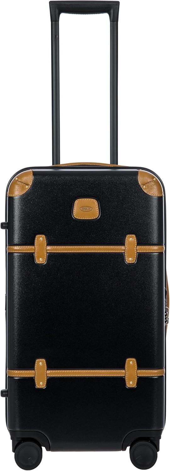 Bric's Bellagio 2.0 Spinner Suitcase - Luxury Hardshell Luggage with Large Wheels, Telescopic Handle, Leather Detailing - Rolling Suitcase for Refined Travel - 25 inch, Black