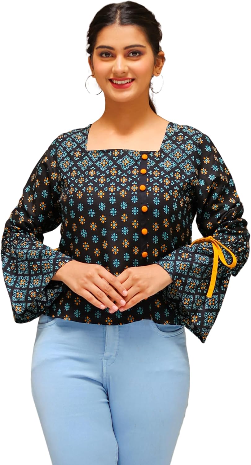 Yash Gallery Women's Tunic Top Square Neck Floral Printed Regular Top for Summer