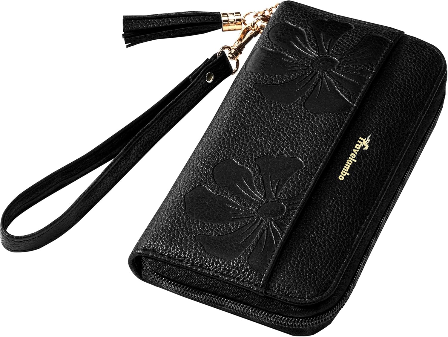 Travelambo Womens Wallet Tassel Bifold Ladies Cluth Wristlet Wrist strap Long Purse