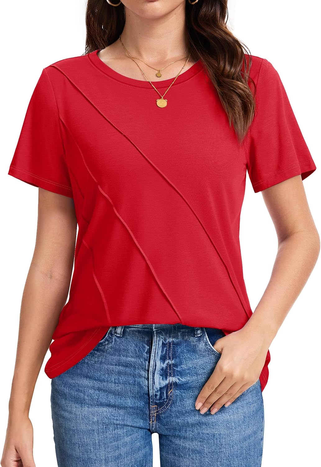 LUXVEER Women's Short Sleeve Tops Pleated Crewneck Loose Fit T Shirt Business Casual Dressy Work Shirts 2026 Summer Blouses