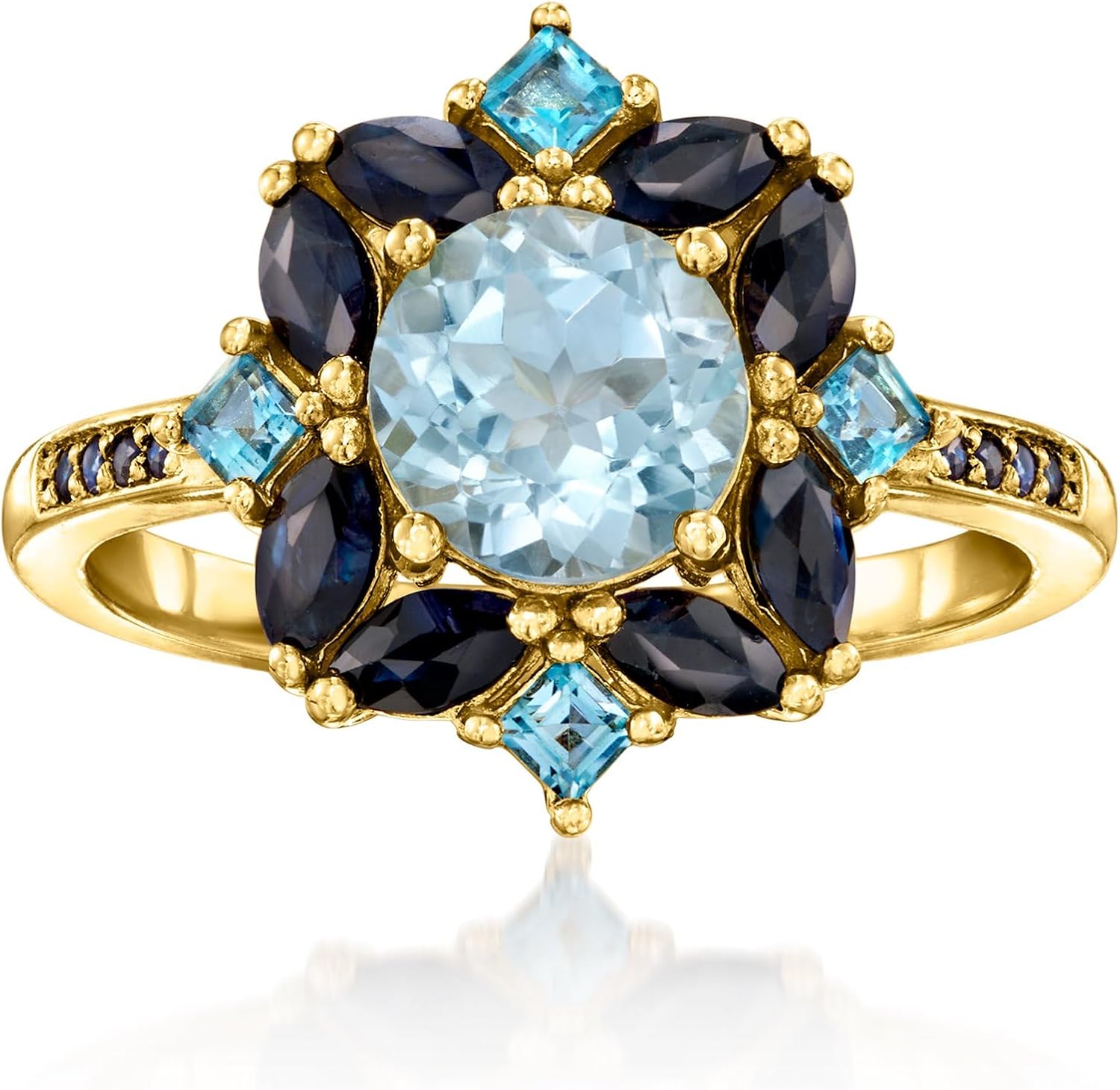 Ross-Simons 1.80 Carat Sky Blue Topaz, 2.40 ct. t.w. Sapphire and .80 ct. t.w. London Blue Topaz Ring in 18kt Gold Over Sterling