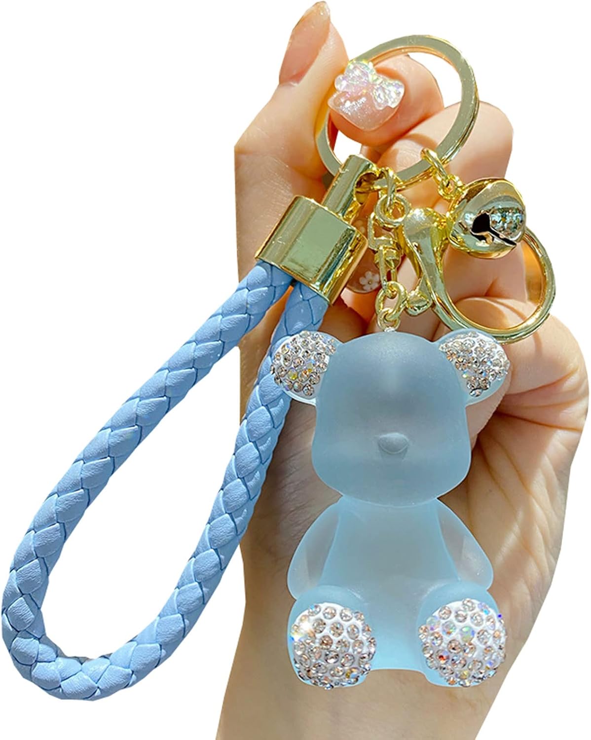Xinbalove Cute Diamond Bear Design Bags Doll Car Key Backpack Keychain Pendant Boys Girls Men Women Soft Resin Portable Keychain Accessories for Christmas New Year Present (Blue)