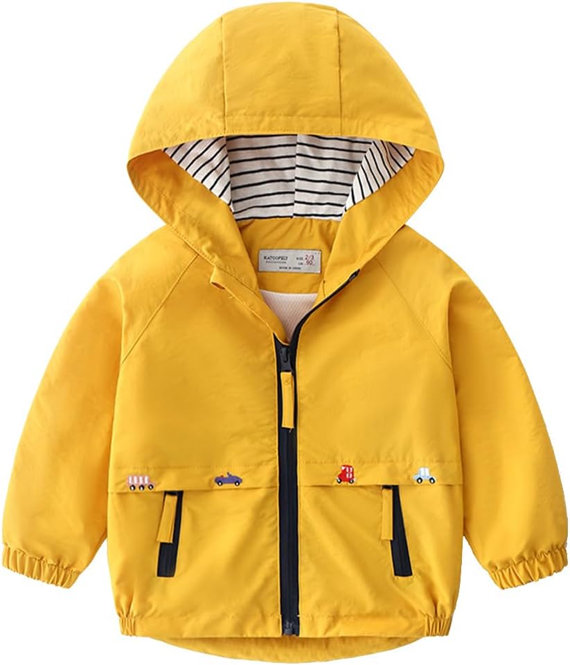 FYMNSI Kids Boys Lightweight Waterproof Hooded Jacket with Pockets Toddler Spring Fall Outfits Zip Up Thin Outwear Coats