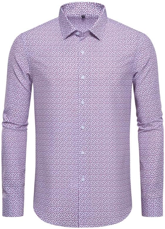 Mens Printed Dress Shirts 4-Way Stretch Long Sleeve Wrinkle Free Floral Casual Button Down Shirt