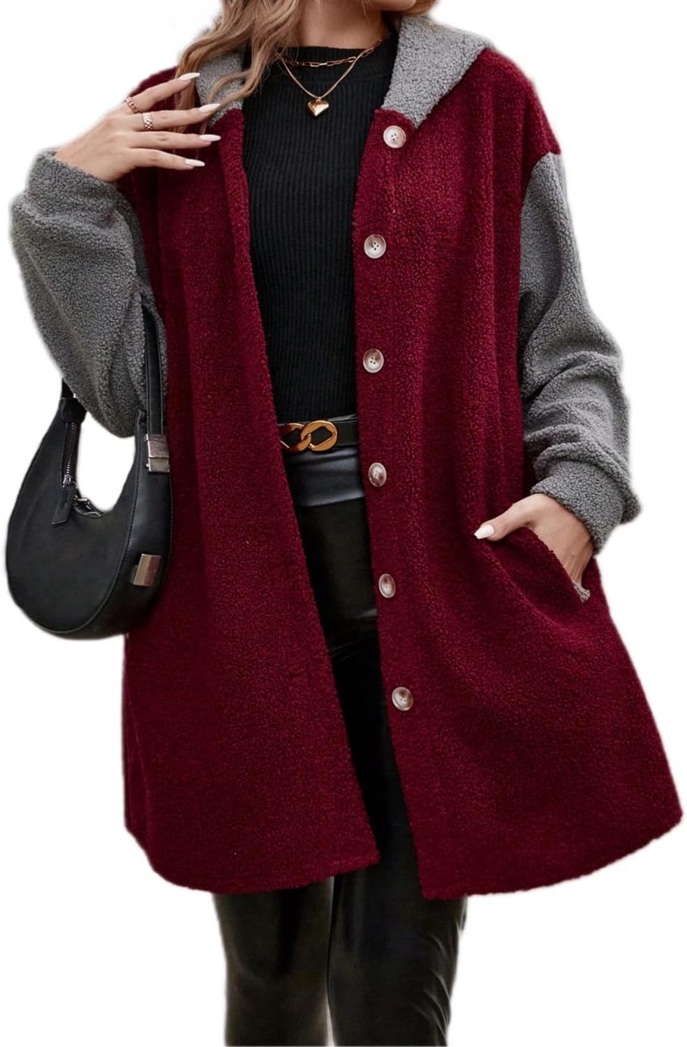 Women Long Cardigan Coat Faux Fur Classic Stylish with Hood & Pockets, Soft Warm Winter Outerwear, Machine Washable