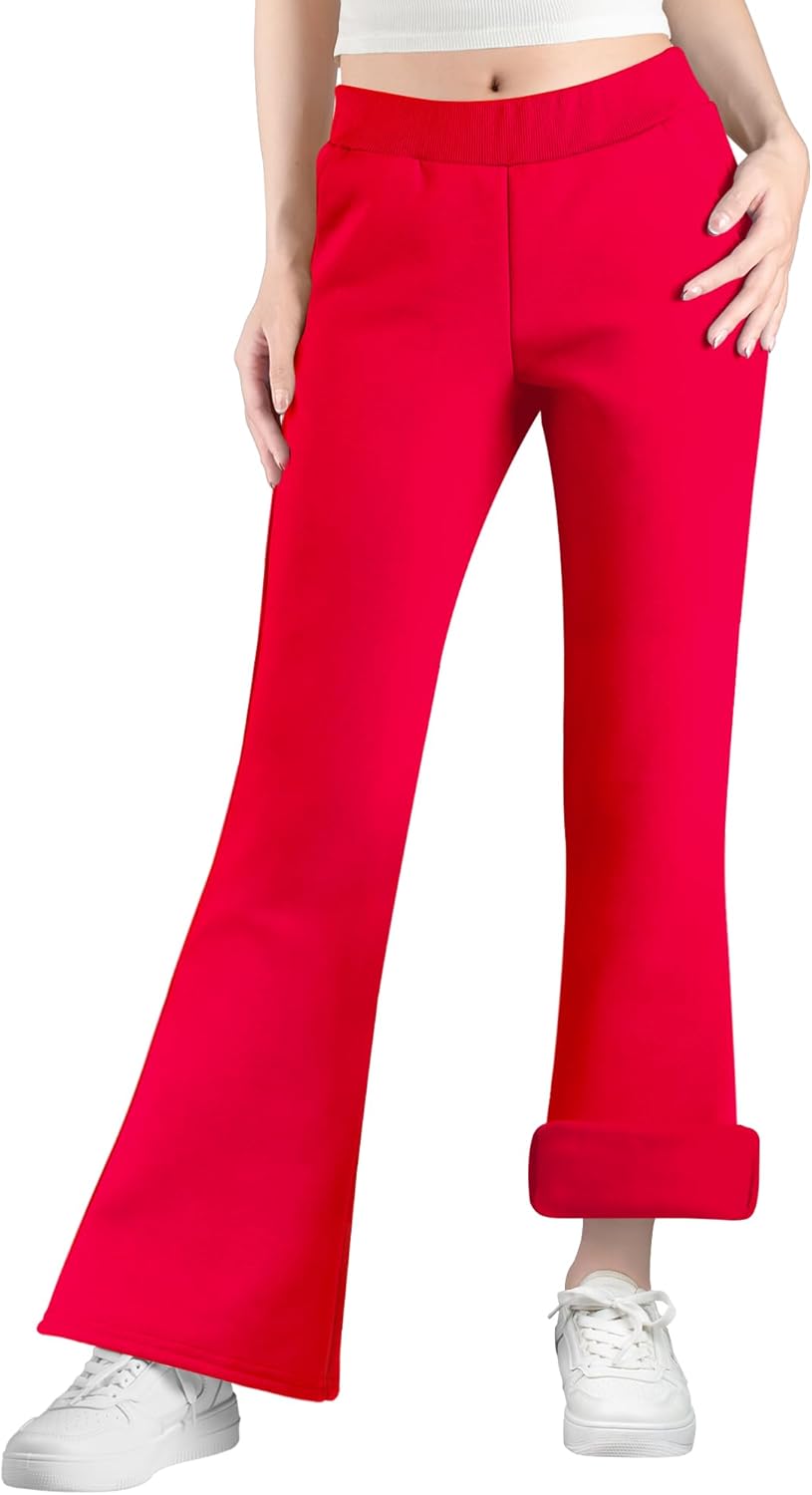 BIG ELEPHANT Girls Fleece Flared Pants – Soft Cotton Bell Bottom Pants with Pockets, Slim Thigh Fit for School & Daily Wear