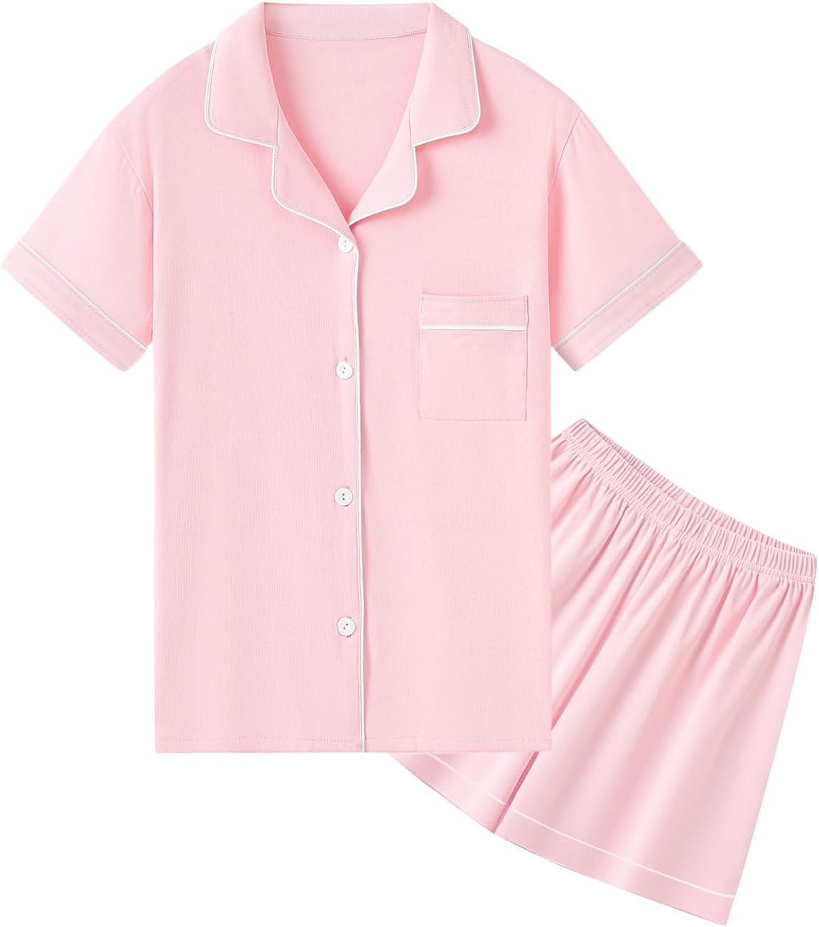 QZH.DUAO Girls & Women's Pajamas Set 100% Cotton PJ Set Button-Down Short Sleeve Sleepwear for Ages 5-14