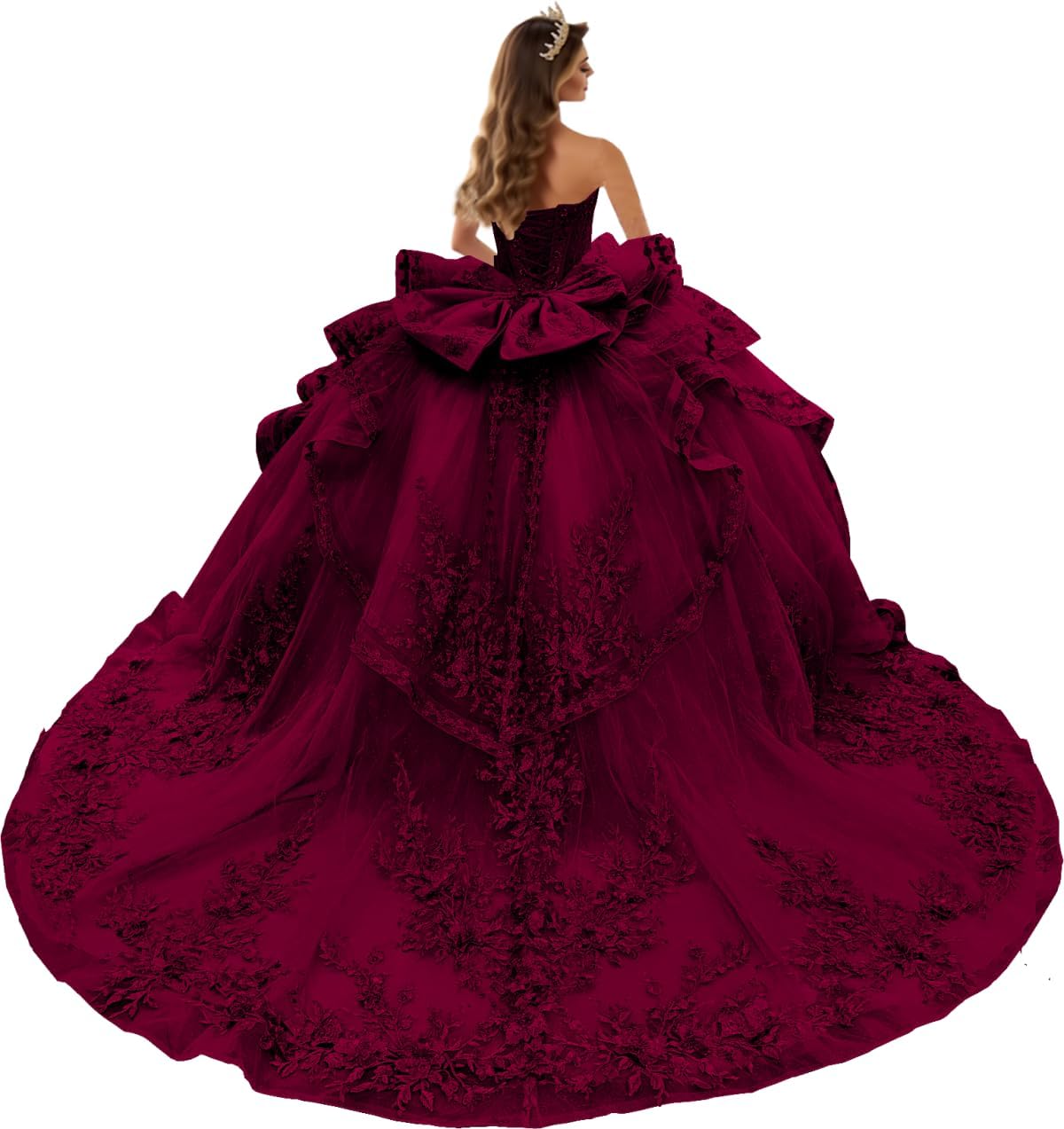 Lace Appliques Quinceanera Dresses with Bow Glitter Beaded Ball Gown Princess Tiered Sweet 15 16 Dress YU027