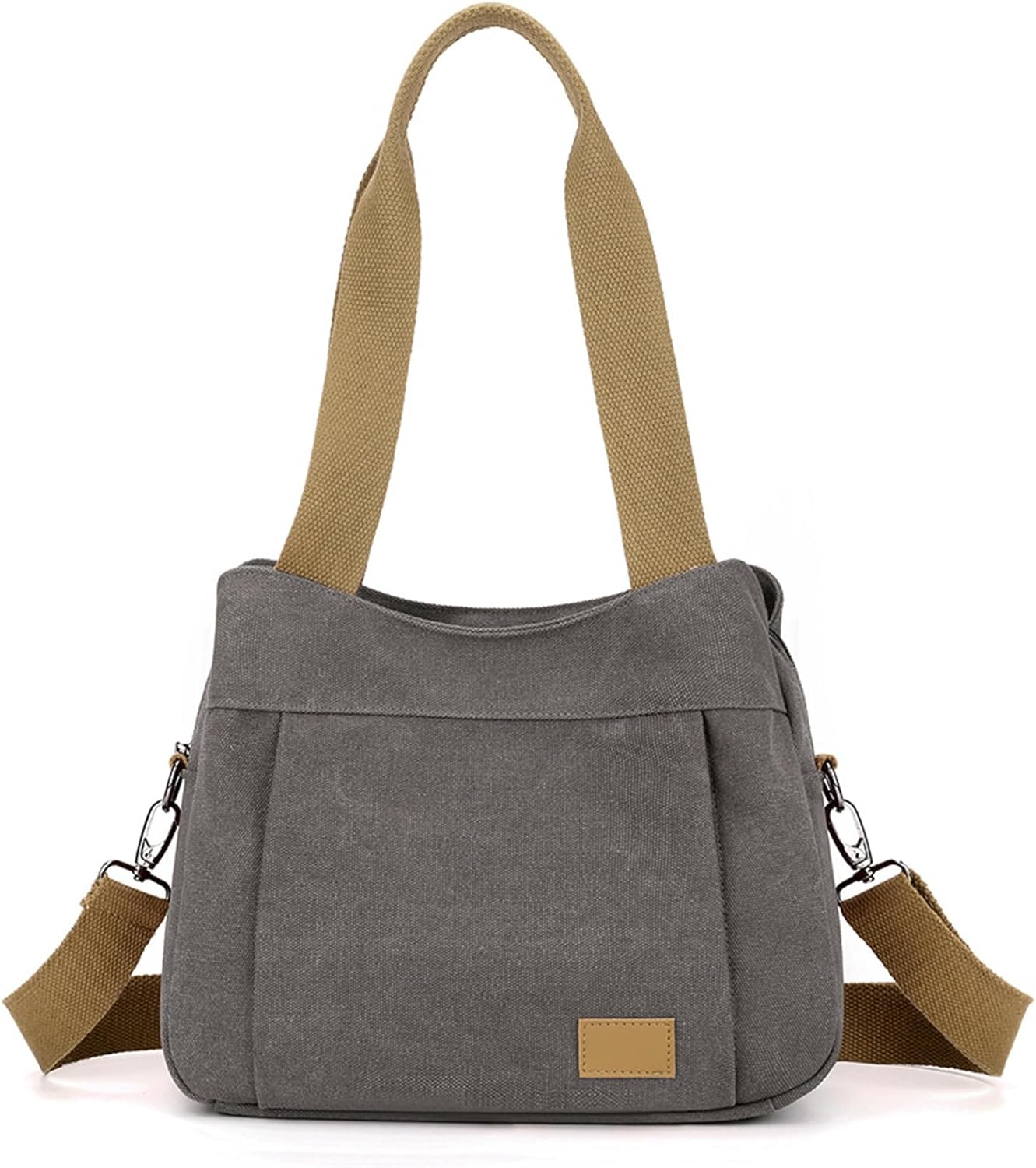 Sunshinejing Women's Canvas Purse Small Shoulder Tote Work Crossbody Bag Multi-pocket Handbag