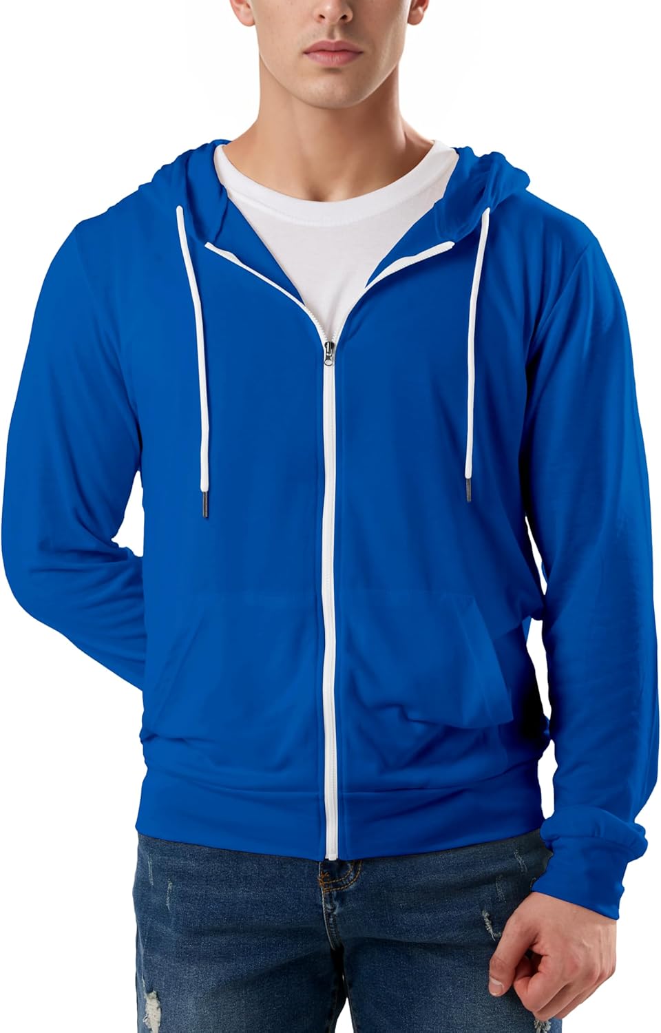 Ohoo Mens Lightweight Soft Fleece Lined Zip Up Hoodie with Pockets Long Sleeve Super Thin Slim Fit Hooded Sweatshirt